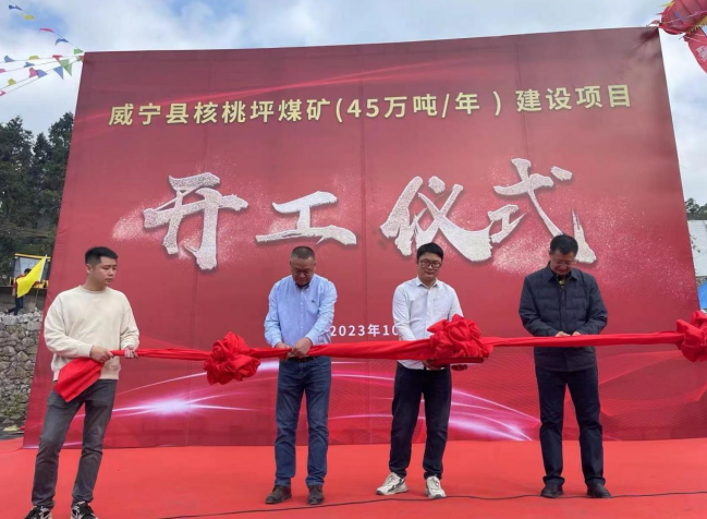 2023年10月24日,东莞海洋之神hy590工业区股份有限公司下属威宁县核桃坪煤矿年产45万吨建设项目在贵州省毕节威宁县炉山镇核桃坪煤矿举行开工仪式。公司主要领导、煤矿项目负责人、施工单位等人员出席了本次开工仪式。